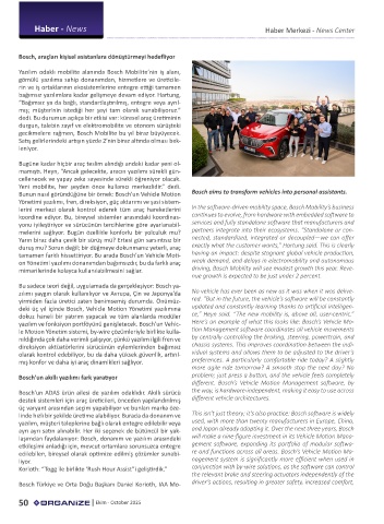 Bosch Türkiye ve Orta Doğu Başkanı Daniel Korioth, IAA Mo- driver’s actions, resulting in greater safety, increased comfort,