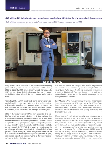 kina’nın servis hizmetleri, sektörde bu ölçümü bağımsız ku- Throughout 2025, GNC Makina’s service operations were eva-