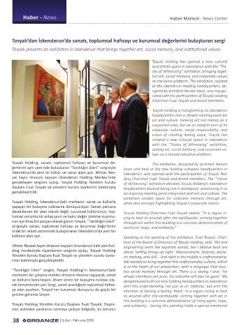 desteklenen bir alan olarak değil; kurumsal kültürünün, top- Tosyalı Holding Chairman Fuat Tosyalı stated: “In a region tr-